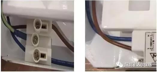 某LED面板燈傳導(dǎo)測(cè)試不合格,該燈具使用二類驅(qū)動(dòng)(不帶地線),而整燈是一類燈具(該燈具使用金屬外殼,金屬外殼直接引出地線,如圖所示):