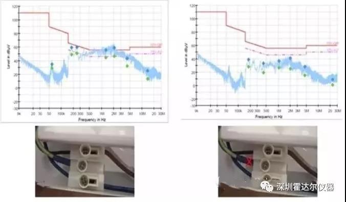 接地與不接地的傳導(dǎo)測(cè)試結(jié)果對(duì)比如下: